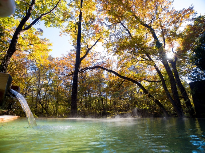 土地の地形や木々を活かした大風呂、4つの貸切露天風呂は、季節・時間によってその表情を変えます。露天風呂の湯巡りで、自然のなかに溶け込むようなひとときをお楽しみください。