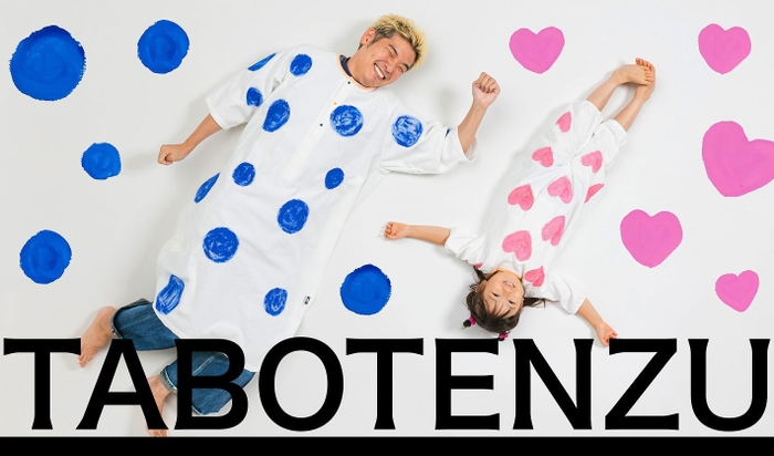 TABOTENZUは、育児をポジティブで自由なものと捉える社会の実現をミッションに掲げ、育児との向き合い方を提案するブランドとして誕生しました。第一弾の商品「かぞくのおえかきウェア」は、「汚れても、まあいっか」とポジティブに楽しんでほしいという想いから誕生しました。1才半~4才頃のこども用と、おとな用の各2サイズの展開。えのぐが中の服に染み込むことを気にせず、親子で一緒に思い切りえのぐあそびを楽しむことができます。表生地についたえのぐは洗濯しても残るようになっており、使うたびにえのぐの跡が「思い出」として積み重なっていき、こどもと過ごす時間の経過や成長を感じることができます。
