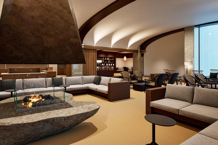 新設したプレミアムラウンジでは、チェックイン時や湯上りなどに自由に利用できる無料のドリンクをご用意しております。ドリンクを片手に暖炉の炎に癒されながら、思い思いの時間をお楽しみください。