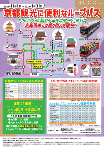 京阪バス株式会社(本社:京都市、社長:三浦達也)では、オーバーツーリズムによる京都市内の公共交通機関の混雑及び京都駅への一極集中の緩和に寄与することを目的に、11月1日(土)より三条京阪を起点とした京都市内観光循環バスを期間限定で実証運行いたします。