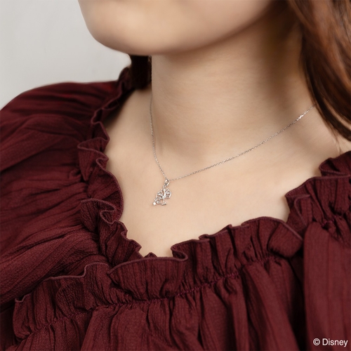 ネックレスは、透かしの作りでキャラクターの姿を楽しめるケイウノのロングセラー商品『Friends of Smiling』を踏襲し、さらにディズニー・アニメーション映画『ファンタジア』の特別感を楽しめるよう、メレダイヤモンドが輝くデザインに。上質なプラチナを使用し、永く愛せるネックレスに仕立てました。