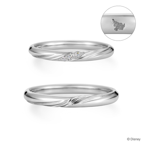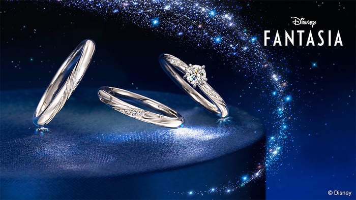 夜空に降り注ぐ星々がきらめき、ふたりの未来を祝福するようなイメージでデザインした結婚指輪。3つのメレダイヤモンドには、ディズニー・アニメーション映画『ファンタジア』が長編アニメーション3作目であるという意味合いをこめています。