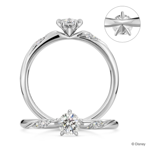 婚約指輪は5つの爪でダイヤモンドを支えており、石座を下から覗き込むと「星」のシルエットが見えるデザイン。