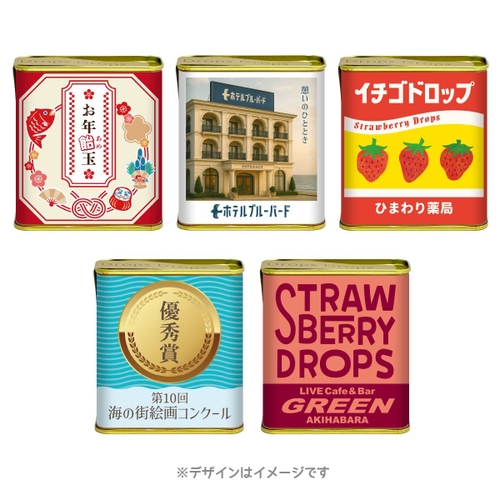 缶の全面をフルデザインできる仕様で、ロゴやイラスト、写真など自由なレイアウトが可能。企業の販促キャンペーンや周年記念、展示会配布用など、ブランドの世界観をそのまま形にできます。小ロットにも対応しており、ブライダルでのご使用など初めてのオリジナル制作にもおすすめです。