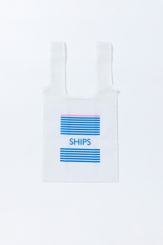 お馴染みのローソンストライプにSHIPSロゴを融合させたデザインや、対象商品である「エビアン」をモチーフにしたデザインなど、全3種類のオリジナルエコバッグをご用意。