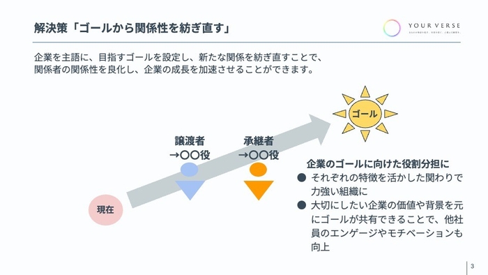 そのため、Your Verseのような第三者の媒介の存在かつ、コンサルティングのような外部圧力ではなく、組織内部・個人の内発から始める変革のアプローチの必要性があります。