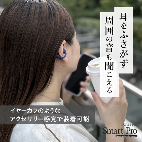 イヤーカフのように装着できるオープン型ワイヤレスイヤホンです。圧迫感がなく、長時間の使用でも快適。周囲の音を自然に取り込みながら、会話や環境音もそのまま聞き取れます。