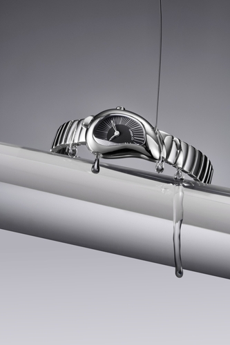 “DROP(雫)”という名の通り、液体が流れ落ちる瞬間をデザインコンセプトにした新コレクション。ケースはステンレススチールを有機的に成形し、エッジを極限まで削ぎ落とした立体的なシルエットが特徴です。