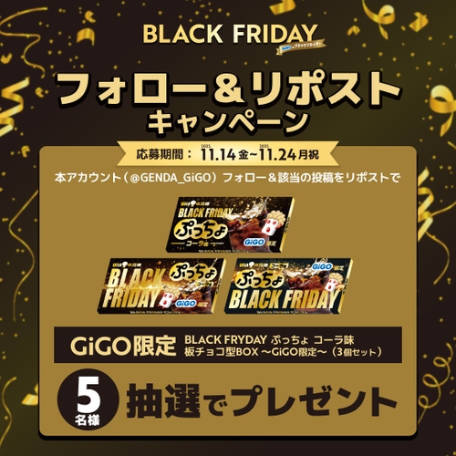 「GiGOのブラックフライデー」を記念し、GiGO公式XおよびGiGO公式Instagramでキャンペーンを開催します。