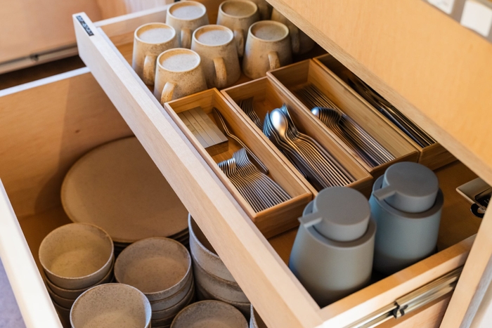 お好きな食材を自由に持ち込んでお楽しみいただけるようアイランドキッチンの設備もございます。小さなお子様連れの方やアレルギーのある方も安心してご滞在いただけます。