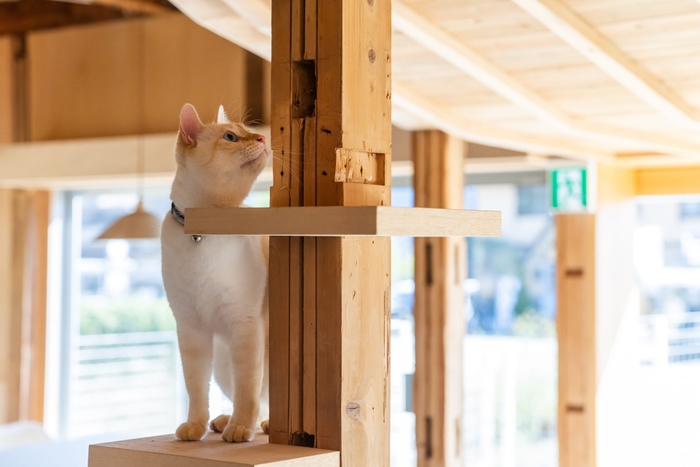 館内には猫や小さな仲間たちのためのキャットウォークを設置。愛猫たちがのびのびと遊び、くつろげる居場所を確保しました。