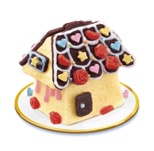 「こんなお家に住めたらいいな」と思いながら、細部までこだわって仕上げた一品です。デコレーションパーツも充実しているので、自由な発想で、自分だけのお菓子の家を作ってみてください。