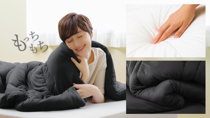 放湿性にも優れており、布団内に湿気をため込みにくいため、ムレを感じにくい快適な寝心地を保ちます。まるで雲に包まれるような軽やかさと、ふんわりとしたボリューム感を両立しました。