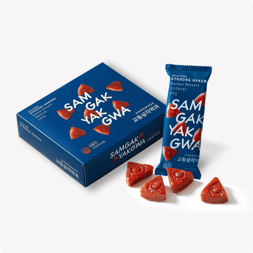 韓国伝統菓子の代表的なアイテム「薬菓(ヤッカ)」伝統的な製法で作られたコシのある生地でもちもちした食感と甘くて風味豊かな味わいが魅力です。一口サイズで楽しむ手軽な三角形の薬菓が4つ入り。持ち運びしやすいパッケージで伝統のお菓子をモダンにいつでもどこでも気軽に分け合える小菓子に仕上げました。