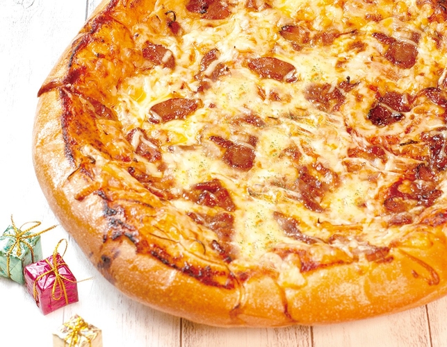商品特徴:トマトソースをベースに、ベーコン・ソーセージ・オニオン・チーズをのせました!