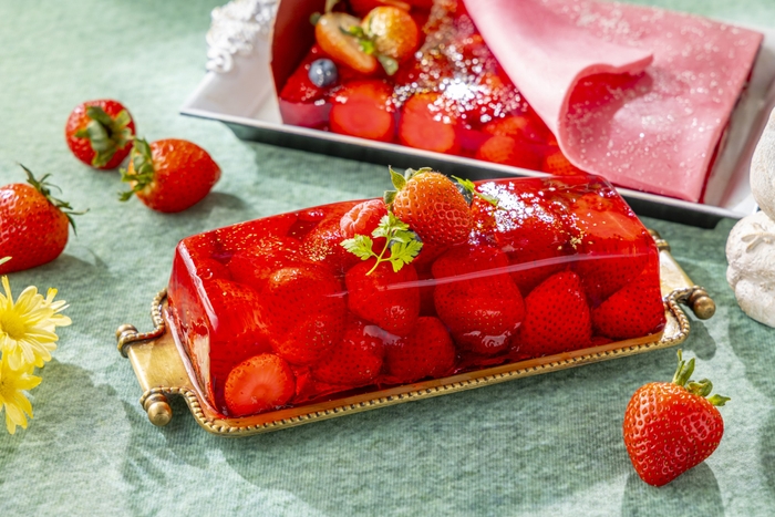 妖精のベッドをモチーフにした、夢のようなゼリーテリーヌ。ぷるんとしたゼリーの中に苺の果実をたっぷりと詰めた、見た目にも可愛らしい一品です。