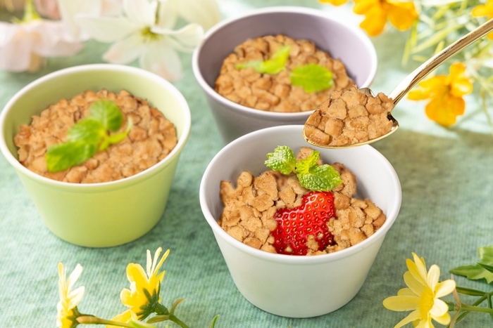 約15種類のセイボリーには、春の訪れを感じさせる魅力的なラインナップをご用意しています。 お口直しにぴったりな、さっぱりとした苺風味の「ドライストロベリーとシーフードのセビーチェ」、チェダーチーズとともに味わう「季節野菜のラクレット風」、ほのかにガーリックが香る「菜の花とシラスのパスタ」など、季節感あふれるメニューをお楽しみいただけます。 そのほかにも、あさりとカラフルなあられを添えた「海鮮中華スープ カラフルあられ添え」、お好みではちみつをかけて楽しむ「ゴルゴンゾーラのホットサンド はちみつ添え」、箱庭のような見た目が可愛らしい「スモークサーモンとカッテージチーズの箱庭風抹茶ちらし寿司」など、多彩なセイボリーをお好きなだけお召し上がりください。