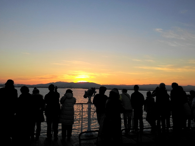 ミシガンのデッキから、美しく厳かな初日の出をご覧いただけます。新たな一年の幕開けをぜひびわ湖でお迎えください。