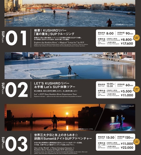 釧路川の特性を活かした独自性の高い3つのSUPツアーを実施・販売します。
