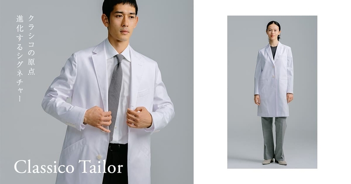 テーラード技術を取り入れた白衣を中心に、メディカルアパレルの企画・開発・販売を行うクラシコ株式会社【創業:2008 年 / 所在地:東京都港区 / 代表取締役 CEO:大和 新(おおわ あらた)】は、原点回帰をテーマに、クラシコのルーツであるテーラリングとクラシカルな印象を追求、かつ生地の白さにもこだわったリニューアルモデルを発売いたします。