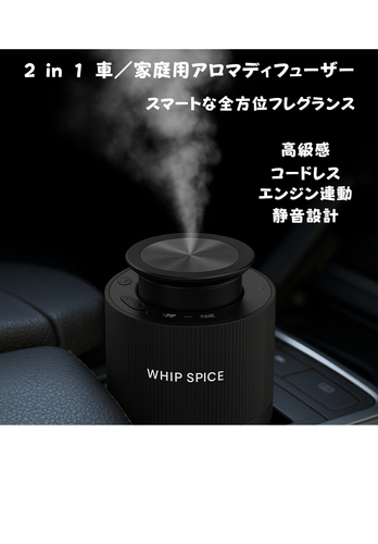 WHIPSPICEからは、車内でも自宅でも使える コードレス2in1アロマディフューザー と