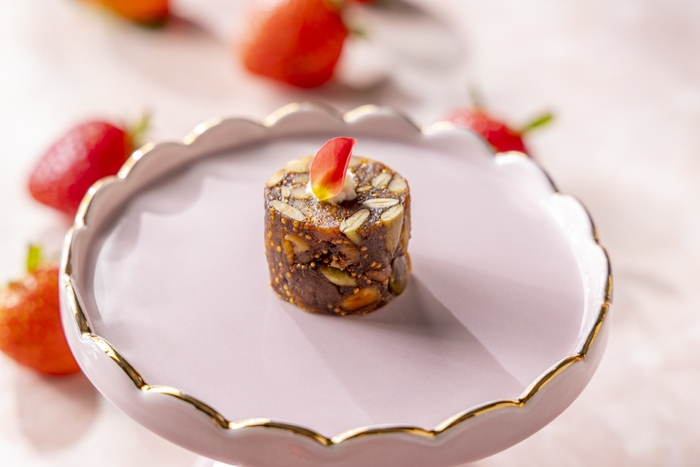 セミドライいちじくと胡桃、パンプキンシードを練り込み、ノンアルコールのラムの香りをほのかにまとわせました。ナッツの香ばしさといちじくの甘みが重なり合う、アフタヌーンティーにふさわしい落ち着いた味わいです。