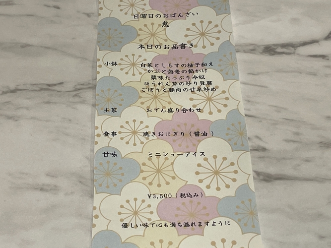 店名:日曜日のおばんざい 惠