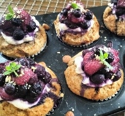 栃木県さくら市が拠点の「山のおやつ工房」。自然の恵みや、つながりのある生産者さんの生命力あふれるおいしい野菜・果物を使い、焼き菓子や加工品を手作りしています。クリスマスのテーブルに好適なミックスベリーのおとうふマフィン450円