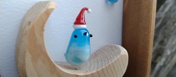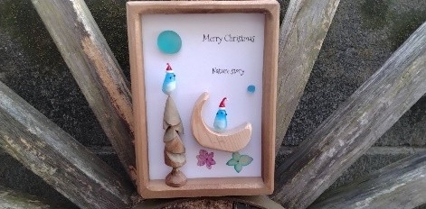 にぎわい広場ガラス細工と木細工を組み合わせた作品をメインで作っている「Glass&Wood KIKI」。動物、木の実、押花など自然を感じる作品の中に優しさを表現し、1つ1つ手作りで制作。クリスマスにちなんだ作品も販売。フレーム2,500円