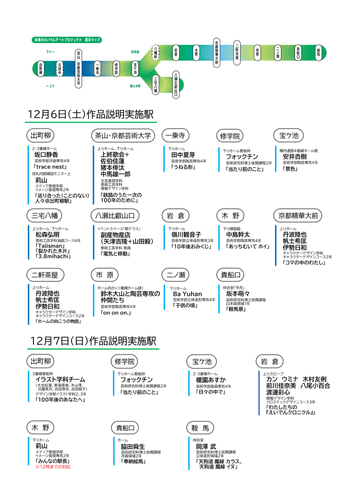 内 容 「未来のえいでん」アートプロジェクトに参加した京都芸術大学・京都精華大学の学生が制作した作品について、自ら現地で直接ご説明します。