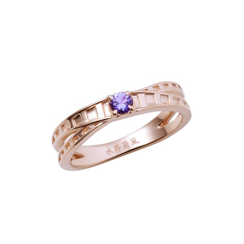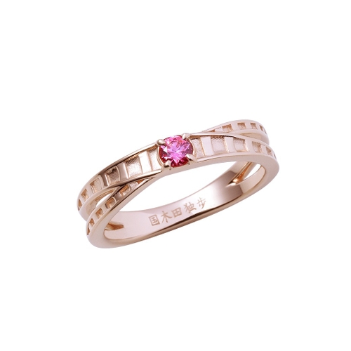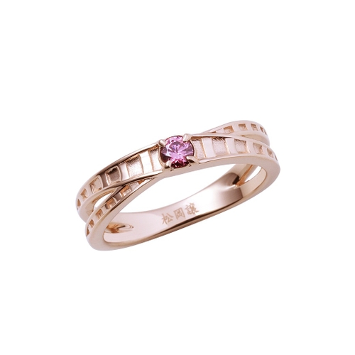 ピンクゴールドコーティングを施した表面にはイメージカラーストーン、内側には名前を刻印しました。