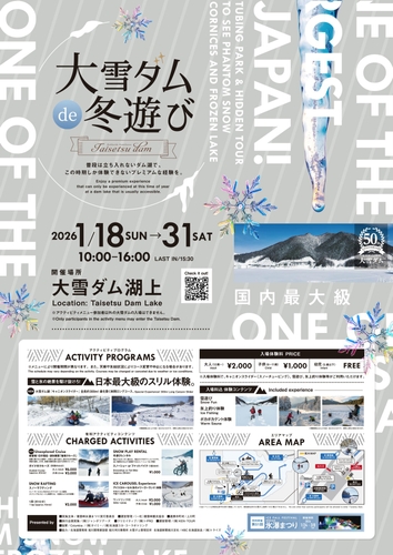 この度、層雲峡氷瀑まつり実行委員会は、㈱ジャンボツアーズの旅行企画実施及び層雲峡観光協会の運営管理のもと、「大雪ダムde冬遊び2026」を開催する運びとなりましたのでお知らせいたします。
