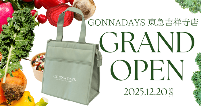 サラダ・デリカテッセンの専門店「GONNA DAYS(ゴナデイズ)」(運営:Mr. LAND 株式会社〈東京都千代田区、代表取締役社長:名塚 令〉)は 2025年12月20日(土)、東急百貨店吉祥寺店 B1階に、“GONNA DAYS 東急吉祥寺店”をグランドオープンいたします。