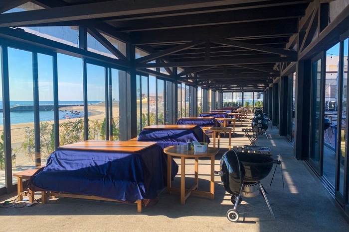 海風の冷たさが厳しい元旦早朝でも、ガラス張りのこたつ席で海鮮BBQやぜんざいを味わいながら、快適に初日の出を待てる新しい過ごし方をご提案します。
