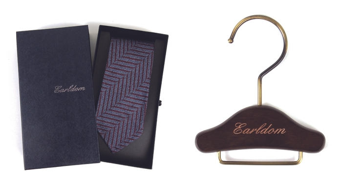 Earldom×四方章敬エアリータイの販売を記念して、EarldomギフトBOX、Earldom木製ミニハンガーをセットいたします。
