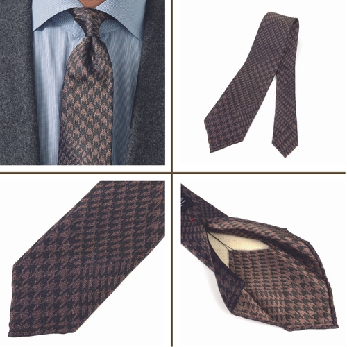 今回は、四方氏自身が本気で締めたいと考えたネクタイを制作。アールダムで軽量ネクタイ「エアリータイ」を一見クラシックながら、今らしい軽快感があり、確実に胸元を洒脱に見せます。