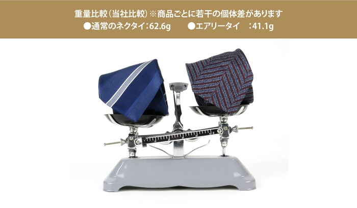 最近のスーツやジャケットは、薄い心地を用い、パッドなども極力省いた軽快な仕立てが主流。そこに昔ながらの重厚なシルクのネクタイを締めると、どこかチグハグな印象となることが多いものです。そこでアラ商事が5年前に開発したのが「エアリータイ」です。旗艦ブランドの「Earldom(アールダム)」で展開し、すでに多くの方々からご支持をいただいております。