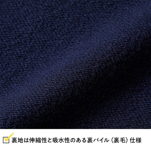 裏パイル特有の高い吸水性と通気性により、長時間の着用でもムレにくく快適。