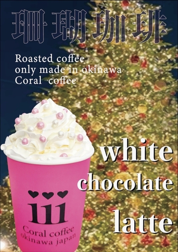 クリスマス期間は沖縄限定焙煎珊瑚焙煎珈琲を使用した「ホワイトチョコレートラテ」を提供します。