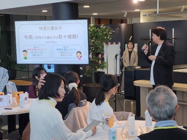 食事体験の後には、臨床遺伝専門医が登壇し、「なぜそのプレートが個々の体質に最適なのか」を解説。参加者は、パーソナライズされた未来の食体験を通じて食と遺伝子への理解を深め、自分のウェルビーイングにつながる具体的な知見を得ました。