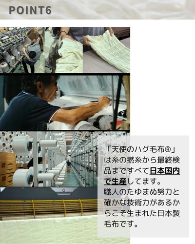 100年以上の老舗メーカーだから作れる。究極のやわらかさ・心地よさを追求した毛布 特許製法が生み出す仕様で寝返りのたびに身体にやさしくフィットし一晩中快適 365日使える。面倒な衣替えも不要。丸洗いできるから清潔