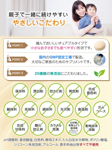 親子で一緒に続けられるチュアブルタイプのサプリメントです。