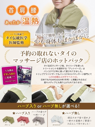 Amazon | 【予約の取れないタイのマッサージ店監修】ホットパック 肩 首 温める【タイ ハーブ 香る】ホットパッド お腹 腰 も ぽかぽか レンジ で繰り返し300回 洗えるカバーつき [アットイーズタイハーブ] グレー | at ease THAI HERB | 温熱ピロー : https://www.amazon.co.jp/dp/B0BP71XXB4?th=1