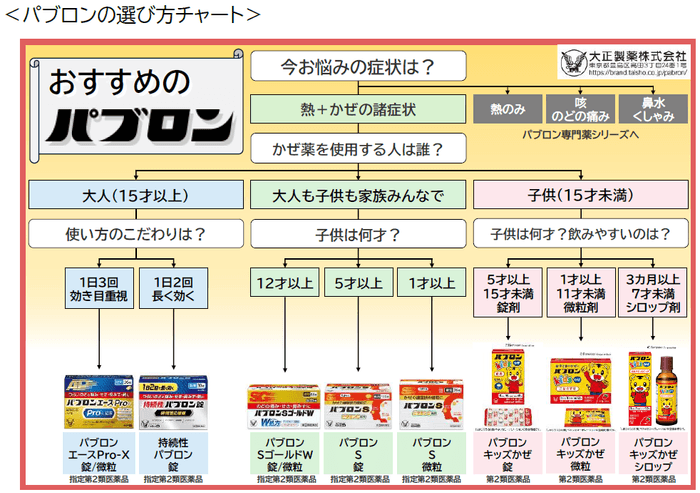 年末年始、ご家族やご友人と過ごす大切な時間に突然のかぜ。そんな時に限って病院が休みで困った経験はありませんか?そんな場面でおすすめなのが、日本全国のドラッグストアやネットショップでも購入できるパブロンです。パブロンは、皆様一人ひとりに合ったかぜ薬を提供できるよう、豊富なラインナップを揃えています。今回は、パブロン選びに迷わないよう、あなたにおすすめのパブロンを簡単に見つけられるフローチャートをご紹介します。これからの年末年始の“いざ”というときの備えとして、ぜひチェックしてみてください。