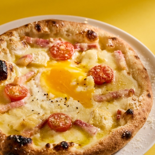北海道日高地方新冠町にある直営農場の「平飼いたまご」がとろりととろける新作ピザ。自家製のべシャメルソースには日高町門別豊郷にある直営牧場で採れる「放牧牛乳」を使用し、優しくまろやかな風味に仕上げました。