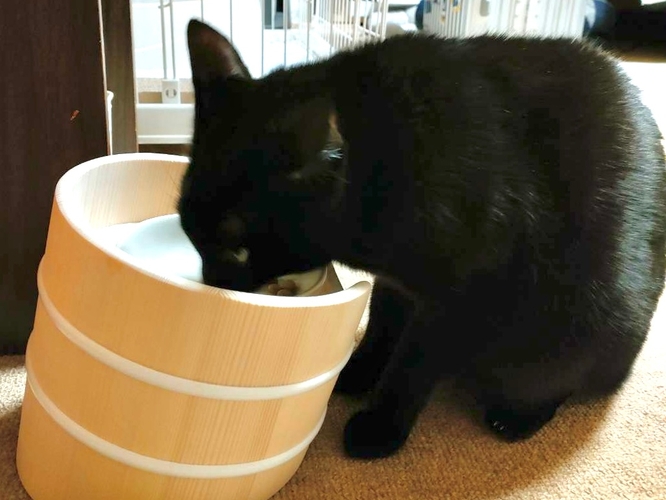 そこで、ねこ桶お膳は 正面以外から食べにくい形状 にデザイン。
