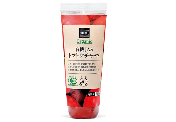 完熟した有機トマト、有機砂糖のコク、まろやかな酸味の有機りんご酢を使用したトマトケチャップ。