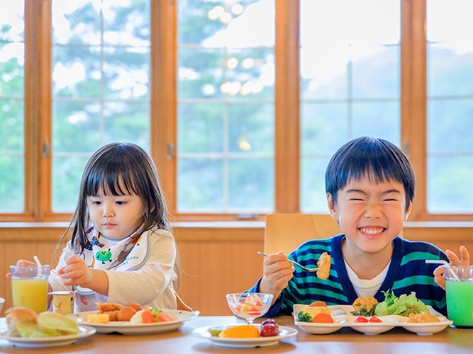 「ウェルカムベビーのお宿」認定のファミリールームを備え、赤ちゃんや小さなお子さま連れでも安心して滞在できるリゾートホテル。館内には国産材100%の遊具やおもちゃで遊べるキッズスペースがあり、安心・安全にお過ごしいただけます。夕食は、和洋中50種類以上の料理を楽しめるファミリーディナーバイキングをご用意しています。