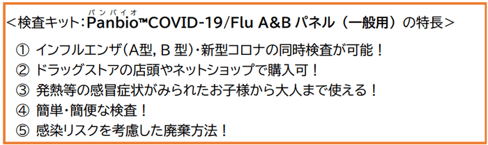 ◆Panbio™COVID-19/Flu A&Bパネル(一般用)の5つの特長!
