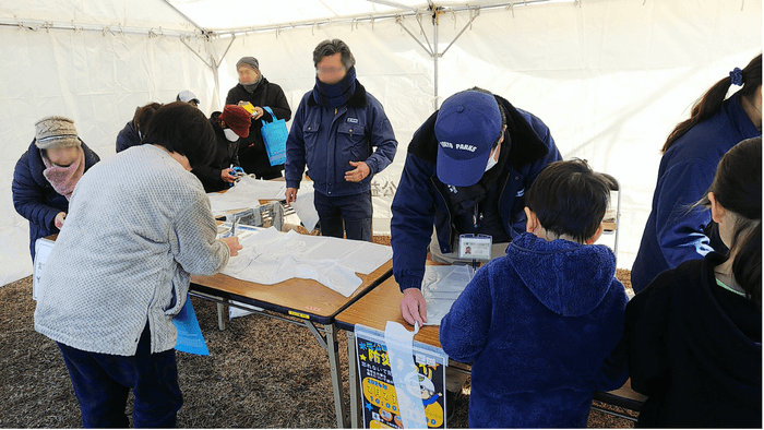 ⑶ 災害備蓄品の配布などもあります。(一般財団法人日本気象協会提供)